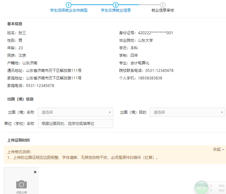 操作说明:学生如果出国(境),则在信息网“就业信息维护”栏目点击“其他去向登记”——点击“选择就业去向”——点击“出国”,按要求填写出国(境)信息并上传证明材料原件扫描件。如有不确定信息可
