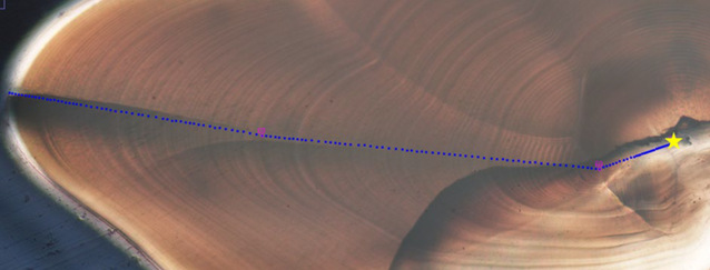 图1 太平洋鳕当年生幼鱼耳石微结构