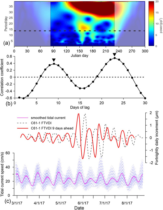 为了解决上述问题,基于黄海夏季调查采集到的太平洋鳕当年生幼鱼,通过耳石微结构分析(图1),结合黄海潮流与黄海冷水团演化特征,通过滤波分析、小波分析、阈值广义加性模型等手段,多学科交叉探究了潮流作用对太平洋鳕幼鱼生长的影响。研究发现耳石日增长同样存在潮流周期的生长变化,且相对于潮流变化存在约8天左右的延迟(图2),同时在幼鱼不同生活史阶段对潮流作用的响应存在差异,在洄游进入到冷水团后的响应显著增强,且在其沉降期的响应最为明显(图3)。进一步通过对比海洋连续观测数据,探讨了上述潮致周期性生长的产生原因,以及黄海“冬季混合-夏季层化”海洋结构季节性演化背景对太平洋鳕幼鱼不同生活史阶段潮致生长的差异性影响,进而反映了潮流作用对于维持黄海冷水团这一层化生态系统的重要意义。