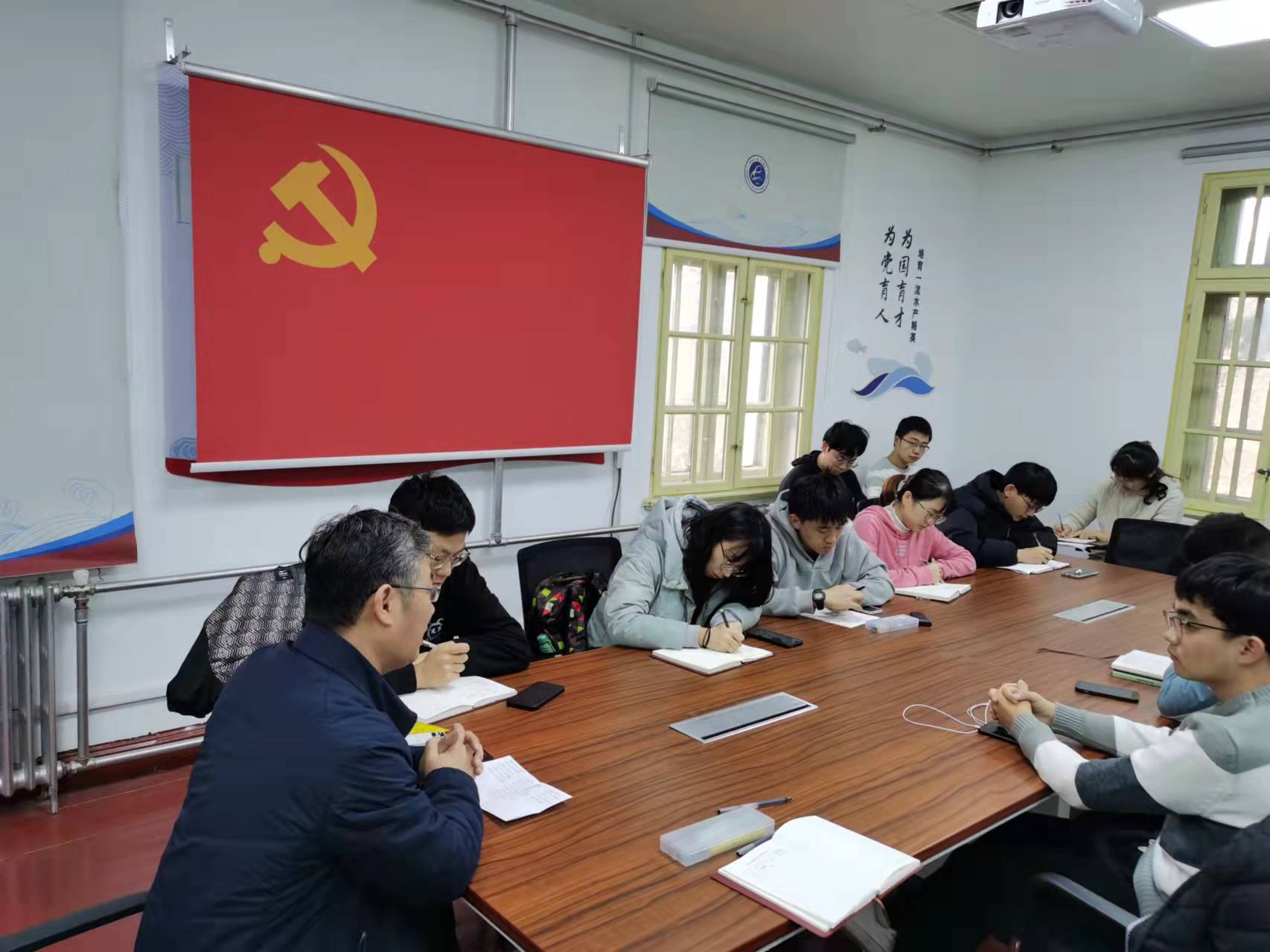 2021年11月30日,水产学院海渔海资本科生党支部主办的“对话党员导师”系列讲座在鱼山校区铭史楼党建活动室举办,党员导师徐宾铎副教授主讲,旨在帮助同学们加深对研究生阶段学习的认识,早日采取行动实现好从本科生到研究生的过渡。讲座由宣传委员王彦霖主持,党支部全体党员参加。
