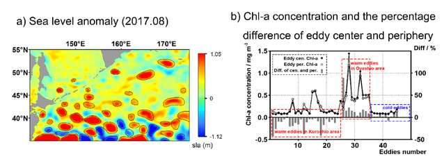 图3. 中尺度涡旋分布及叶绿素浓度分布统计结果