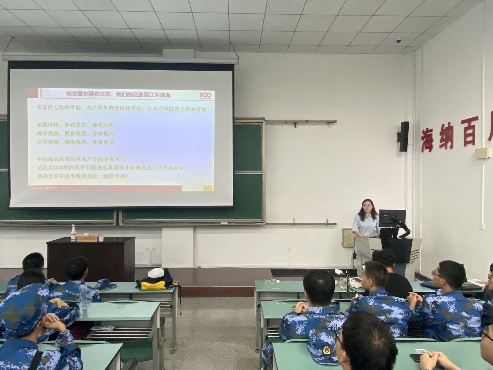 821日下午,由水产学院团委举办的2022级新生素质成才教育讲座在崂山教学区4201顺利召开。水产学院团委书记耿雪晨担任主讲,水产学院全体2022级本科生参加此次教育讲座。