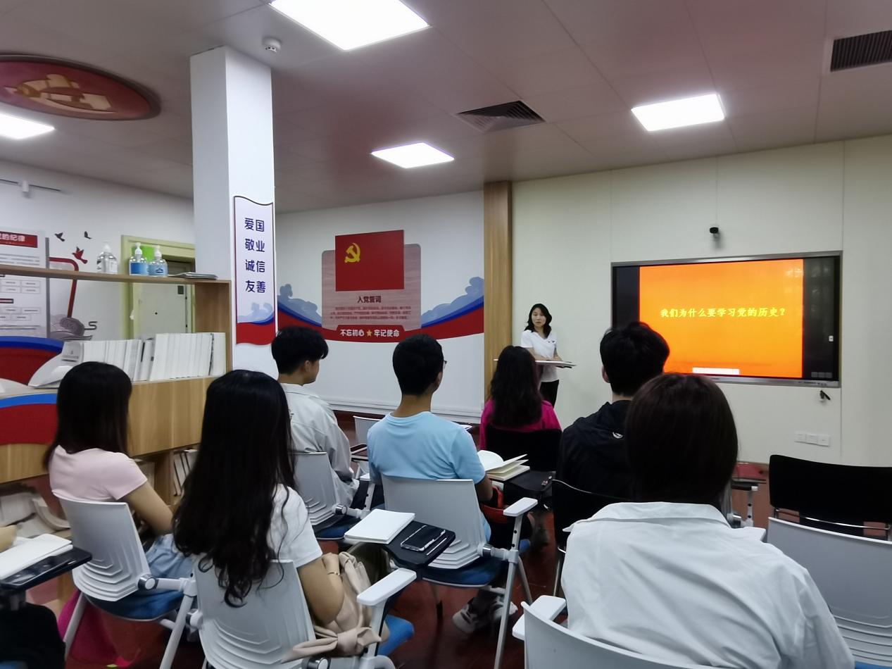 陈老师带大家回顾了中华民族的历史轨迹,讲解了建党历史,党的发展。激发了大家的爱国爱党情怀。党的百年历史中也面临了无数次考验,但在考验和困难面前,中国共产党始终牢记自己的初心和使命,全心全意为人民谋幸福,为实现中华民族伟大复兴而奋斗。我们始终坚信中国共产党是具有远大理想、坚定信念的党;是全心全意为人民服务,始终代表全中国人民的根本利益,受到人民衷心爱戴的政党;是坚定不移沿着正确路线和道路不断前进的政党;是敢于斗争,善于斗争,不怕牺牲,奋斗不息的政党;是具有强大自我净化、自我完善、自我革新、自我提高能力的政党。