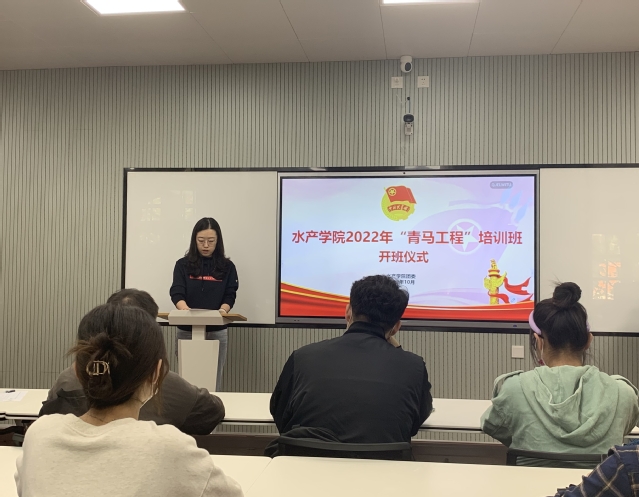 水产学院2022年“青马工程”培训班开班仪式于1016午在鱼山校区档案馆举办,本次培训班以“喜迎二十大、永远跟党走、奋进新征程”为主题,学员涵盖团支部书记、团支部委员和学生会组织骨干成员共42人。开班仪式由学院辅导员刘鹏主持,水产学院团委书记耿雪晨、辅导员王世晨参加。
