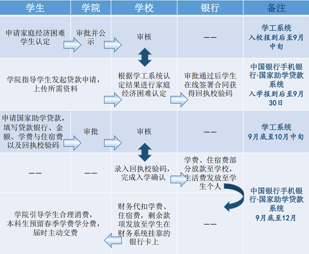 2. 贷款学生不需要交纳学费和住宿费,12月贷款到账后由学校统一处理;已经交费的学生,学校在12月贷款到账后会统一将相应款项拨付至学生本人银行卡内。