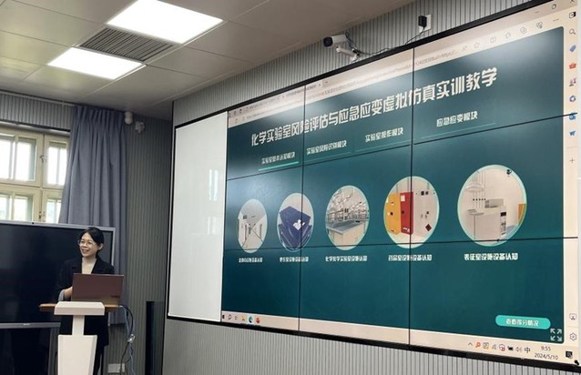 北京欧倍尔软件开发有限公司工程师李梦晴结合虚拟仿真系统从实验室风险隐患识别、实验室操作规范、个人防护、应急演练、消防演练等方面为师生开展了培训,培训会上教师还通过虚拟仿真系统进行了灭火演练操作。