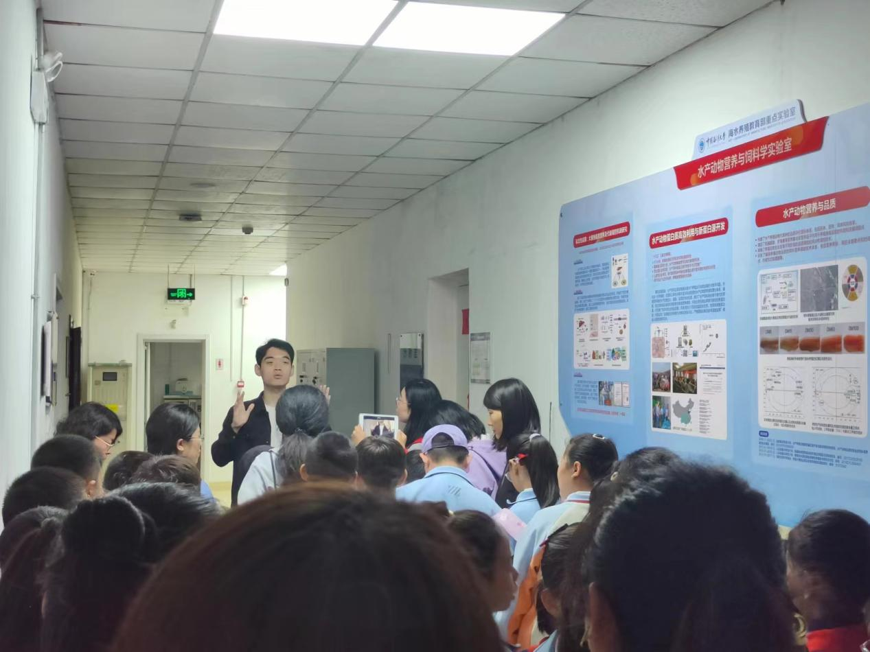 通过在海水养殖教育部重点实验室参观,大家深入了解海水养殖的前沿技术和最新研究成果,实验室展出的墨瑞鳕、虹鳟、牡蛎、海参、对虾、鲍鱼等重要的海水养殖品种,直观地展示出中国海洋大学水产学院的研究成果和进展。