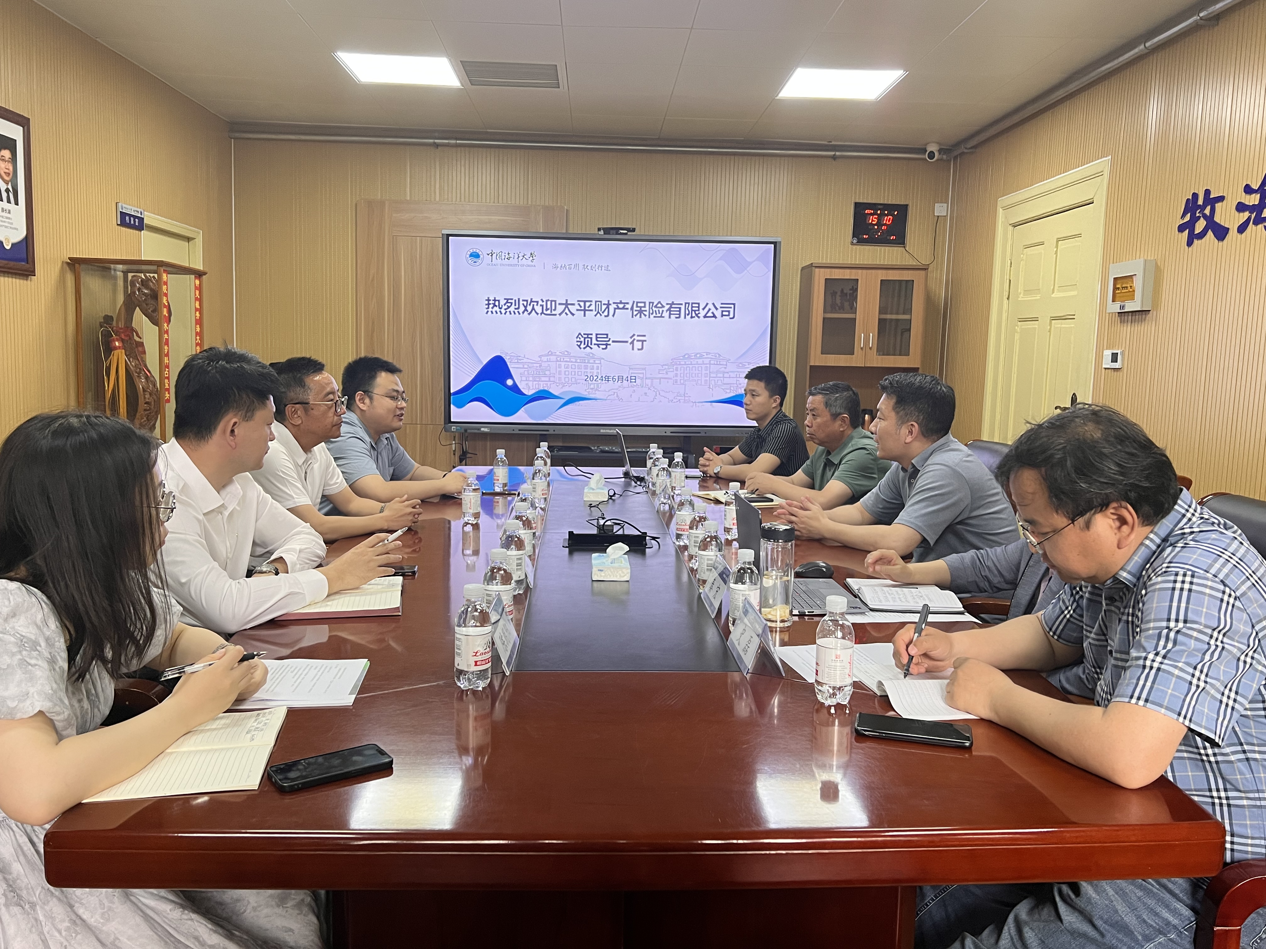 6月4日,太平财产保险有限公司农业保险部总经理于威一行三人到水产学院调研,双方就编写海洋牧场保险白皮书相关事宜展开探讨,水产学院副院长刘阳教授、海洋渔业系唐衍力教授,海洋发展研究院秦宏教授、史磊副教授出席座谈会。