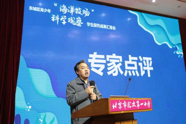 会议在北京市汇文第一小学举行。“海洋牧场”科学观察活动以小学科学、中学生物学科课程为依托,开展校外跨学科科普实践活动。邀请中国海洋大学专家给予项目指导,开展时长1个月的观察活动,完成探究日志记录及探究报告撰写。