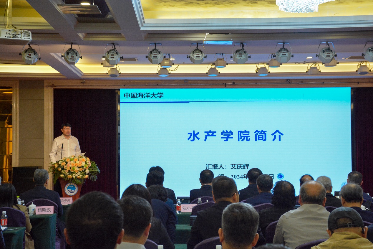 院长艾庆辉汇报学院、学科发展建设情况,他指出,水产学院作为海大两大核心和重要特色学科之一,是我国历次水产业革命性浪潮的主要推动者和实践者,肩负着践行大食物观、保障国家粮食安全的重要使命。在近80年学科建制中,水产学院始终站在领域发展的最前沿,培养了包括8名两院院士、两任国家海洋局局长和数名长江学者、杰青等在内的一大批科技领军人才和骨干力量,解决了我国渔业领域的一系列重大科技问题,为我国发展成为世界第一水产大国做出了突出贡献。2024年,以水产学院为主要贡献的植物学与动物学成为海大首个进入ESI前1‰的学科,海洋与淡水生物学位居USNEWS世界大学学科排名全球第一。这些成就离不开所有关心和支持学院发展的同仁们,是水产人的戮力同心,共同奏响了嘹亮的海洋牧歌。