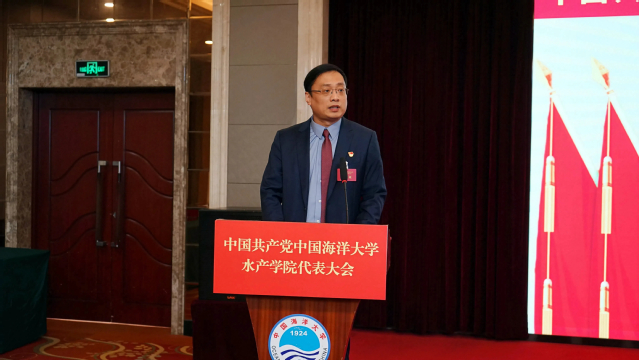 张猛代表中国共产党中国海洋大学水产学院上一届委员会作报告