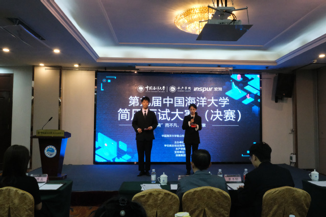 4月24日,中国海洋大学第九届简历面试大赛决赛在鱼山校区学术交流中心隆重举行。经过初赛、复赛激烈角逐,来自不同学院的10位选手晋级决赛进行现场展示。本次大赛由学校学生就业创业指导与服务中心主办,水产学院承办,浪潮集团支持。受邀出席本次比赛的有学生就业创业指导与服务中心副主任颜彬、浪潮集团人力资源经理崔丰韬、山东德衡律师事务所联席合伙人李冬昀、赛轮集团HRBP张晔辰、青岛宏巨国际物流有限公司招聘经理刘言。