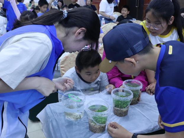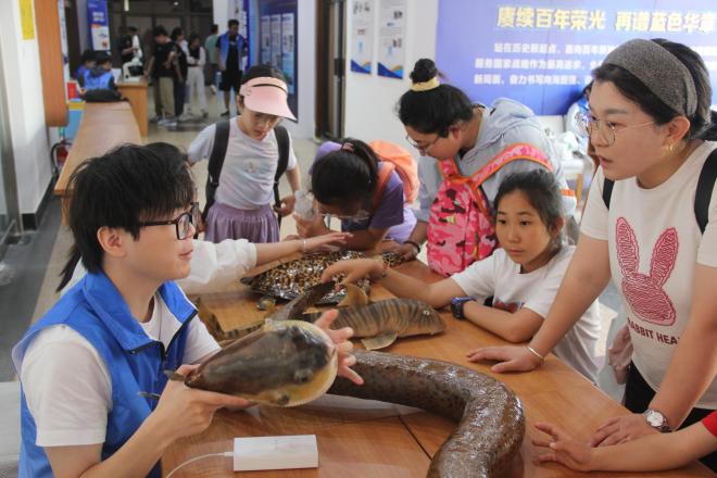 在鱼山校区逸夫科技馆、南极标本馆、敏行馆的参观环节,青少年们近距离观察了丰富的海洋生物标本、极地科考成果及水产养殖设备。南极标本馆的珍稀鱼类标本、逸夫科技馆的海洋牧场模型等展品,让学生们直观感受到海洋科学的广博与深远。