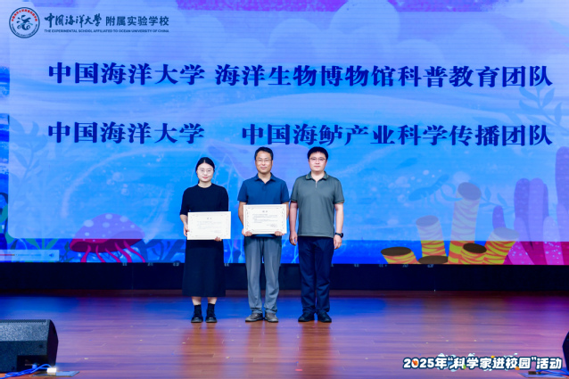 2025年9月9日下午,在第41个教师节来临之际,水产学院中国海鲈产业科学传播团队,以及郑小东教授、朱明壮高级实验师受聘中国海洋大学附属实验学校“行远专家——海洋教育导师”。