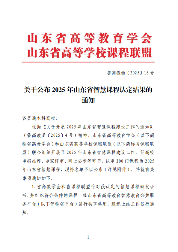近日,山东省高等教育学会、山东省高等学校课程联盟公布了2025年山东省智慧课程认定结果,水产学院2门课程成功入选,标志着我院在人工智能赋能教学改革、深化智慧课程建设方面取得了实质性进展。