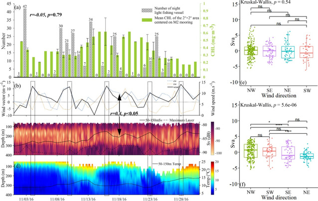 图1 基于潜标数据反映西风促进次表层浮游动物的聚集