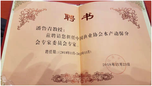 潘鲁青教授被聘为中国渔业协会水产动保分会专家委员会专家