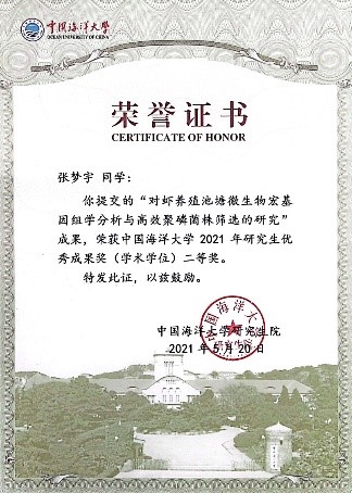 张梦宇:《对虾养殖池塘微生物宏基因组学分析与高效聚磷菌株筛选的研究》