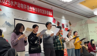 祥龙辞岁,金蛇起舞。2025年1月18日,水产动物环境生理学研究室2024年度总结会议在中国海洋大学学术交流中心阳光海岸厅圆满召开。研究室潘鲁青教授、苗晶晶副教授、10位在青工作的毕业生代表及全体在读研究生欢聚一堂,共同庆祝蛇年新春。