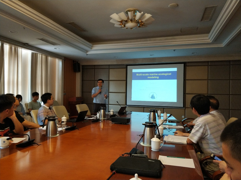 7月18日下午,国境外文教专家2018年度系列讲座:美国Rubao JI教授系列讲座在鱼山校区学术交流中心青岛厅举行。讲座邀请伍兹霍尔海洋研究所(WHOI)研究员季如宝教授,为师生带来题为“Multi-scale marine ecological modeling”的讲座。中国海洋大学水产学院田永军教授主持讲座。