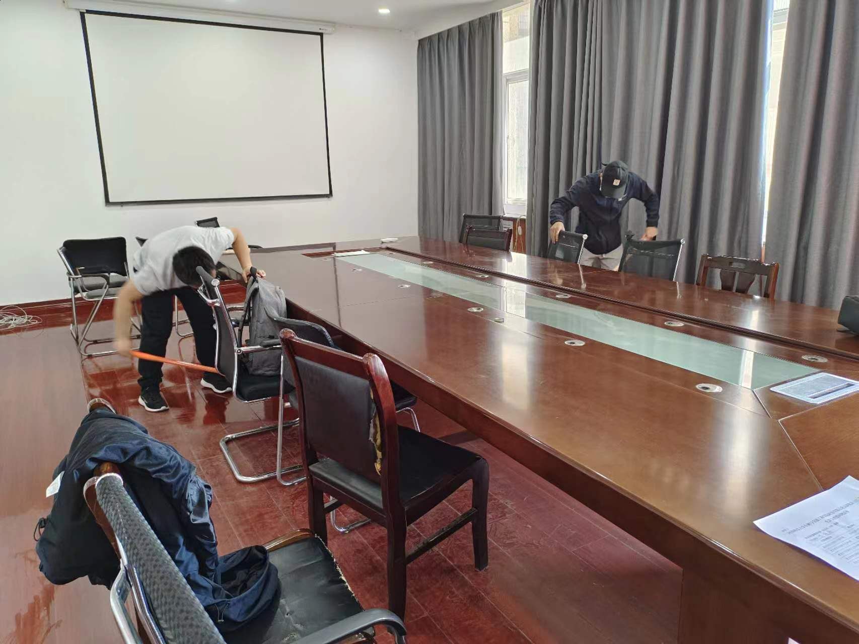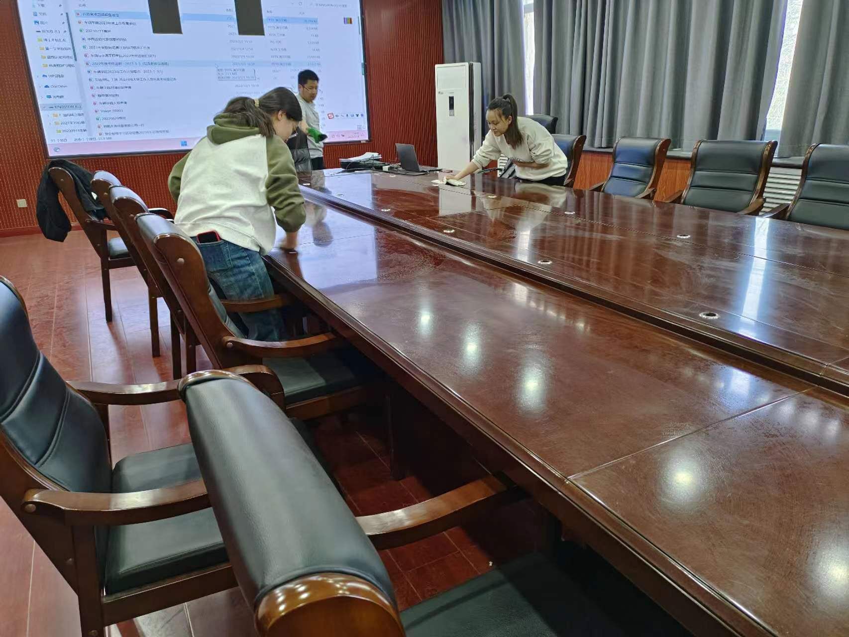 经过同志们的讨论和建议,决定以支部党员集中打扫教学会议室的形式开展此次“我为师生办实事”活动,旨在为同学们营造一个干净、卫生、整洁的良好学习环境。活动前同志们一起交流了该如何准备如何去做什么时候做等问题。3月14日下午两点,同志们拿着抹布、拖把、扫把等工具陆续来到了2号楼。此次活动,同志们集中打扫了225和235会议室。一开始,大家分工合作,擦桌子、扫地、拖地、擦黑板窗台等等并对电线椅子等物品进行整理摆放。
