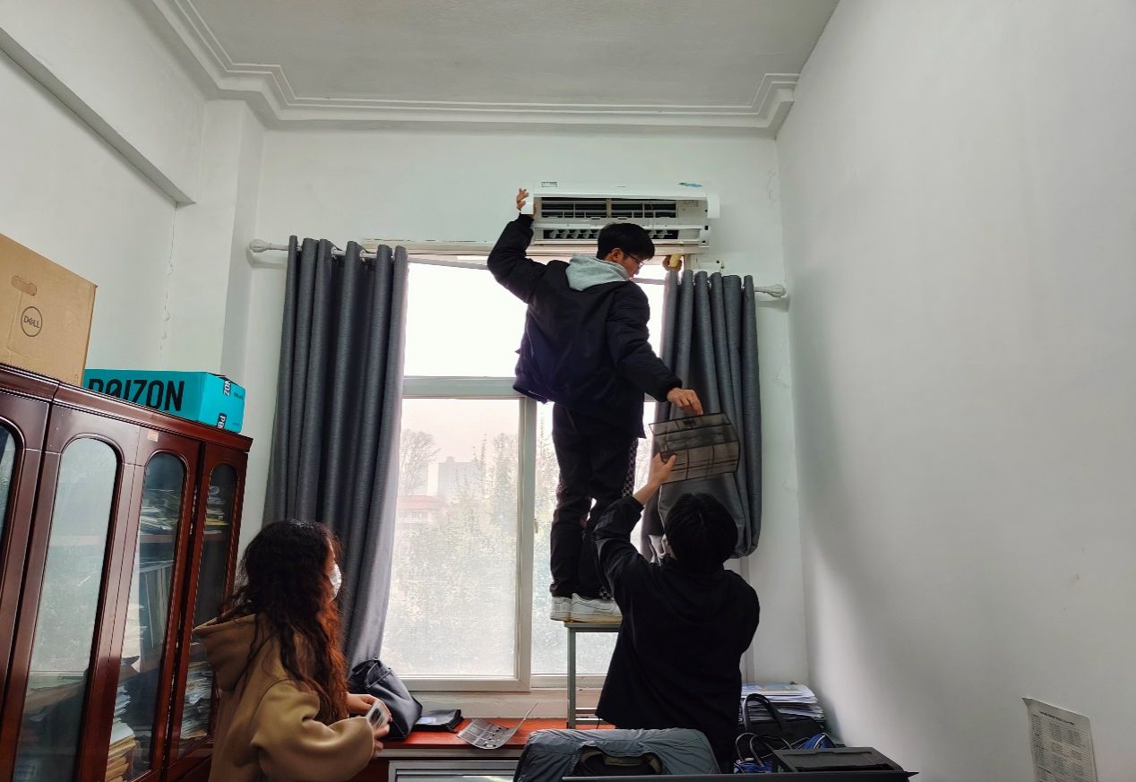 党委开展“我为师生办实事”系列志愿服务活动,包括宿舍安全隐患排查,校园电动车摆放,办公区消毒喷洒,办公室、宿舍空调清洗、考研就业分享会、食堂意见征集等,以实际行动展现共产党员的高度责任感和强烈使命担当。