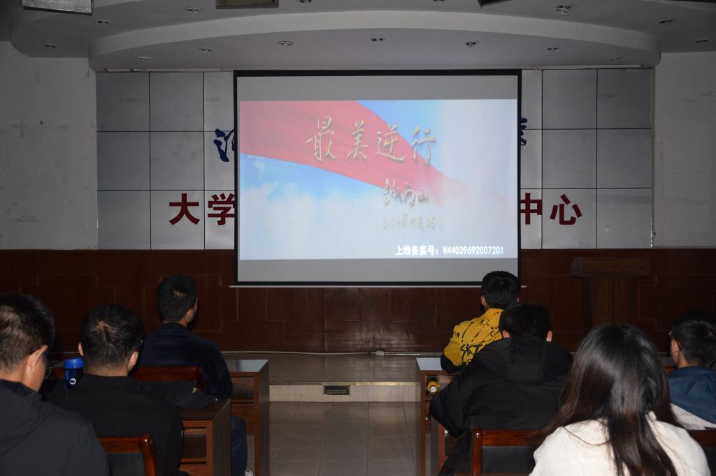 在6号楼101教室举办以“最美逆行”为主题的观影活动,全体学生党员参加此次观影。