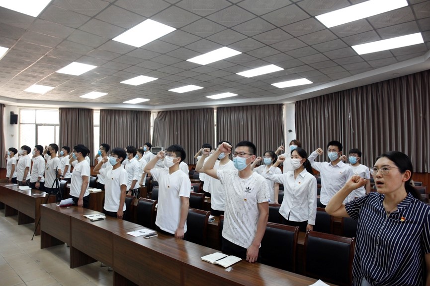 实际,对新党员提出五点要求:一是要立大志,把个人的发展融入到党和国家的发展中去;二是要明大德,加强道德修养,追求更有品位的人生;三是要成大才,加强学习、不断创新,做社会主义合格建设者和可靠接班人;四是要担大任,脚踏实地、实学实干,培养吃苦耐劳精神;五是要提高政治站位,严格遵守学校和家庭所在地各项防疫规定,开启自律充实的暑假生活。