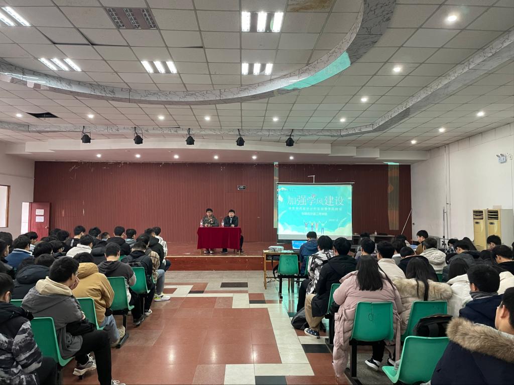 在大学生活动中心举办学风建设月启动仪式。党委副书记陈建峰、兼职辅导员崔锦涛出席会议。全体18级学生参加。