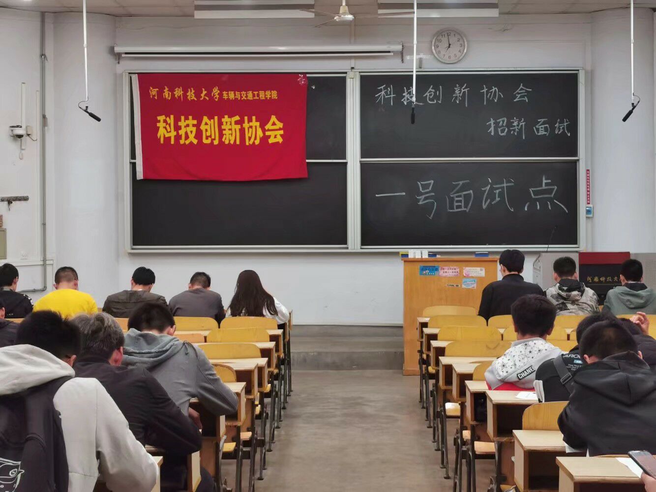 晚上19时,在张斌,罗正,郑颢堃等科技创新协会成员紧锣密鼓的布置之后,招新活动正式开始。面试新生在完成签到,抽号,领招新表后随即来到相应的被面试教室。科技创新协会成员作业面试官在这里面试新生。被面试者首先有一到两分钟进行自我介绍,接着,面试官向新生介绍科技创新协会的背景和具体工作以及提问问题。比如自己关于这个部门的想法,自己未来的规划和期望,为什么要加入这个部门等一系列的问题。这样可以从面试者的回答中看出他的态度和他们内心的真实想法。面试期间,面试者积极回答问题,面试官言辞谨慎,考虑周到。招新活动顺利完成。