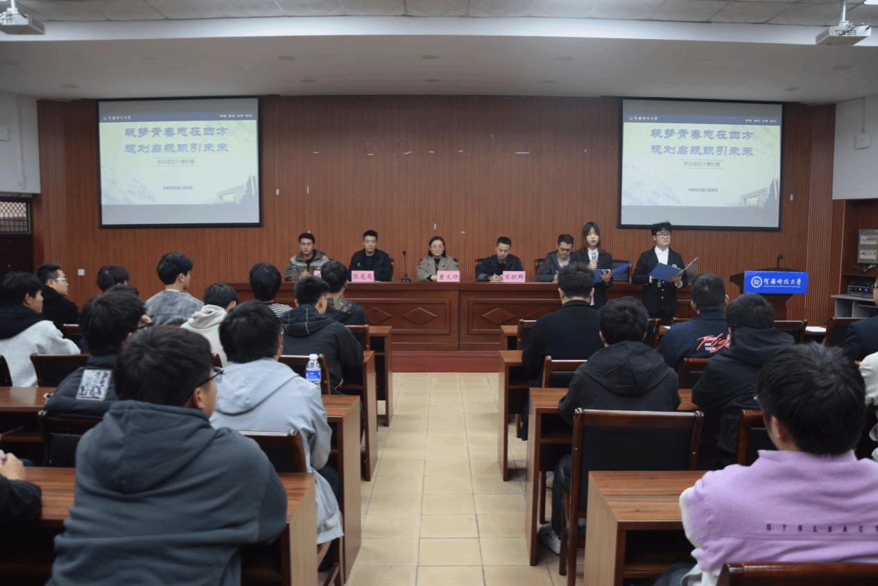 在西苑校区6号楼101会议室举办职业规划大赛初赛。本次比赛特邀院就业工作办公室主任兼2021级辅导员董文铮、学工办副主任兼2022级辅导员张亮亮、团委副书记兼2023级辅导员宋织群、2024级辅导员焦雪猛、研究生辅导员袁国强为评委,2024级学生代表观赛。