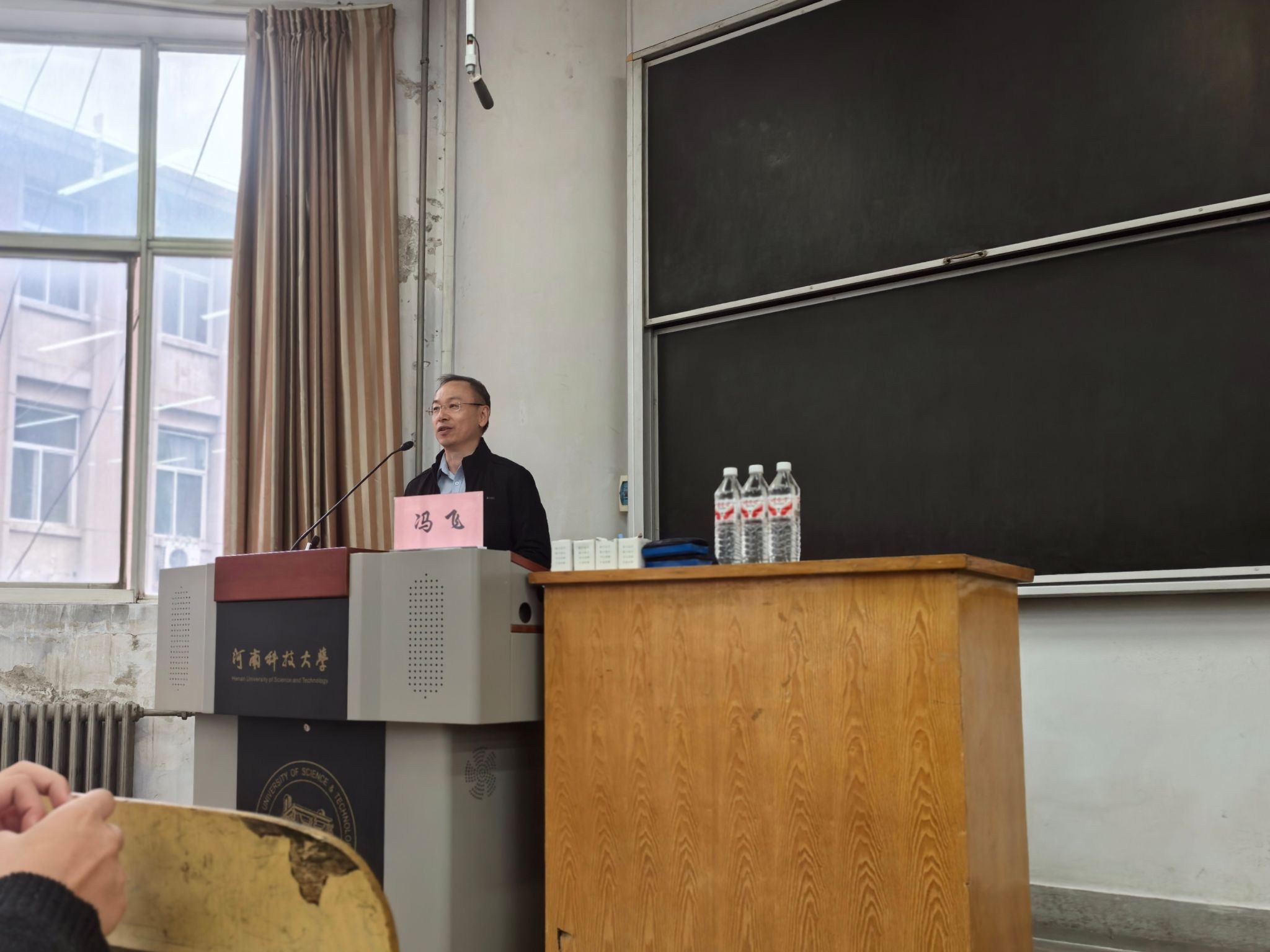 党委书记冯飞以“优秀专业素养,提升核心竞争力,培养行动力”为核心主题开讲,副主任闫祥海主持讲座,研究生辅导员董文铮与全体25级研究生共同参与。