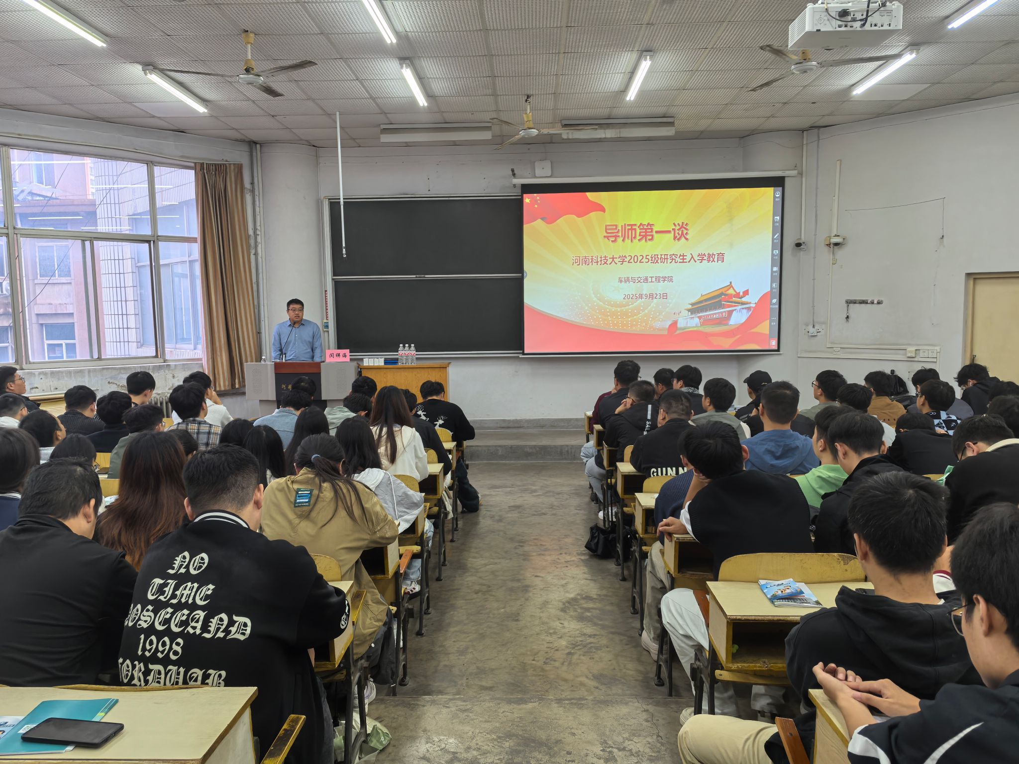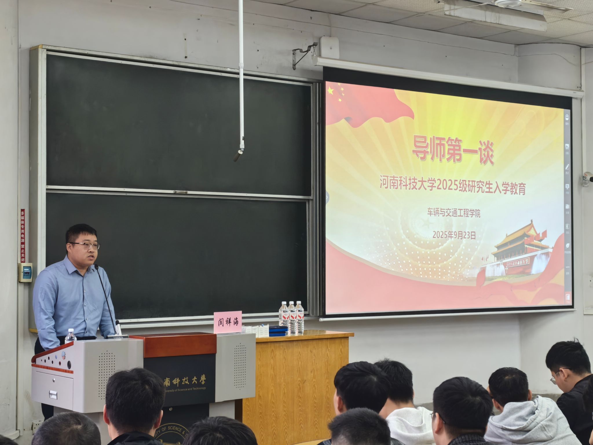副教授闫祥海作为导师代表主讲,研究生辅导员董文铮与全体2025级研究生新生参加。