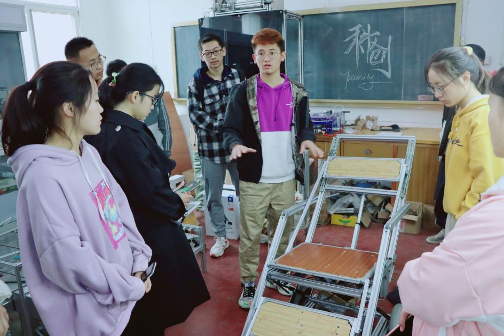 7:40交流活动开始。首先由科创大二负责人张斌来给他们介绍科创的整体情况,如科创具体的分组情况和大体成员概述,具体讲解了科技创新协会的发展历程与发展前景。接着由徐宏伟介绍科创一楼办公室,具体介绍了一楼的电子组和工具组负责的项目和功能,还包括了科技创新协会大一新成员学习的内容。接着由张满奕对农工科技创新中心全体成员依次介绍了一楼的设备:对其中3D打印机,机床等各个设备的功能以及要点进行了详细的讲解。然后由雍佳俊介绍电子组的具体明细以及作品,向农工科技创新中心成员展示了平衡小车等科技创新协会的作品。最后,参与本次活动的成员进行了合影留念,到此交流会圆满结束。