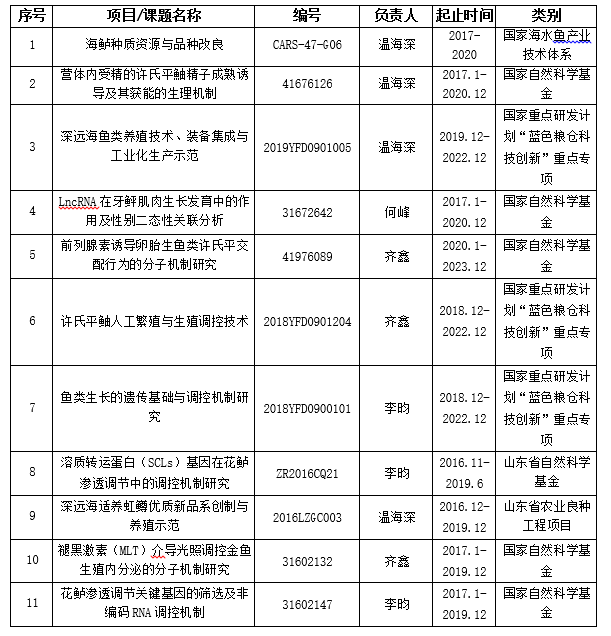 2019年实验室在研项目/课题