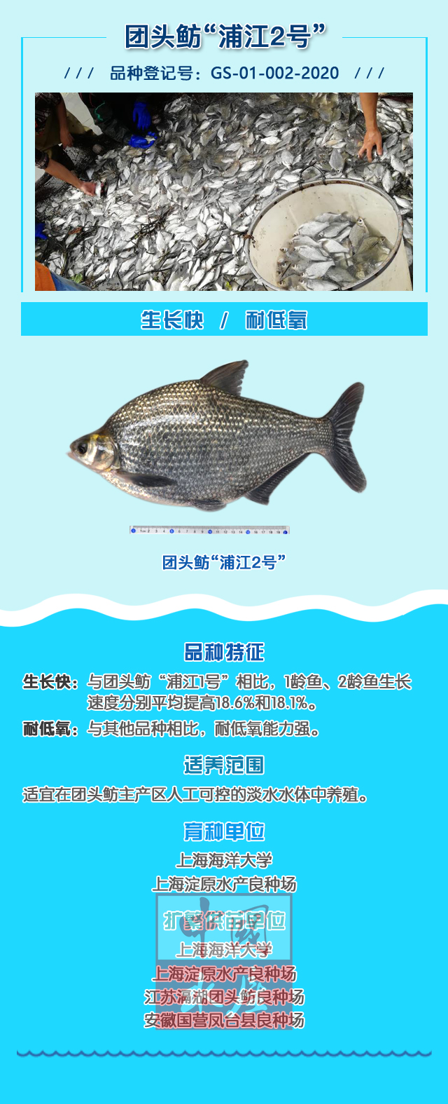 日,农业农村部发布第324号公告,公布14个经全国水产原种和良种审定委员会审定通过的水产新品种(新品种简介见附件2)。为配合公告后水产新品种的试验示范推广应用,年初,全国水产技术推广总站以《水产绿色健康养殖五大行动》之水产种业质量提升行动为抓手,联合各水产技术推广机构、相关科研教育单位及新型经营主体,组织开展14个水产新品种的试验示范推广工作,在全国12个省(区、市)35个区县建立试验示范推广点46个(见附件1),目前各项工作进展顺利。
