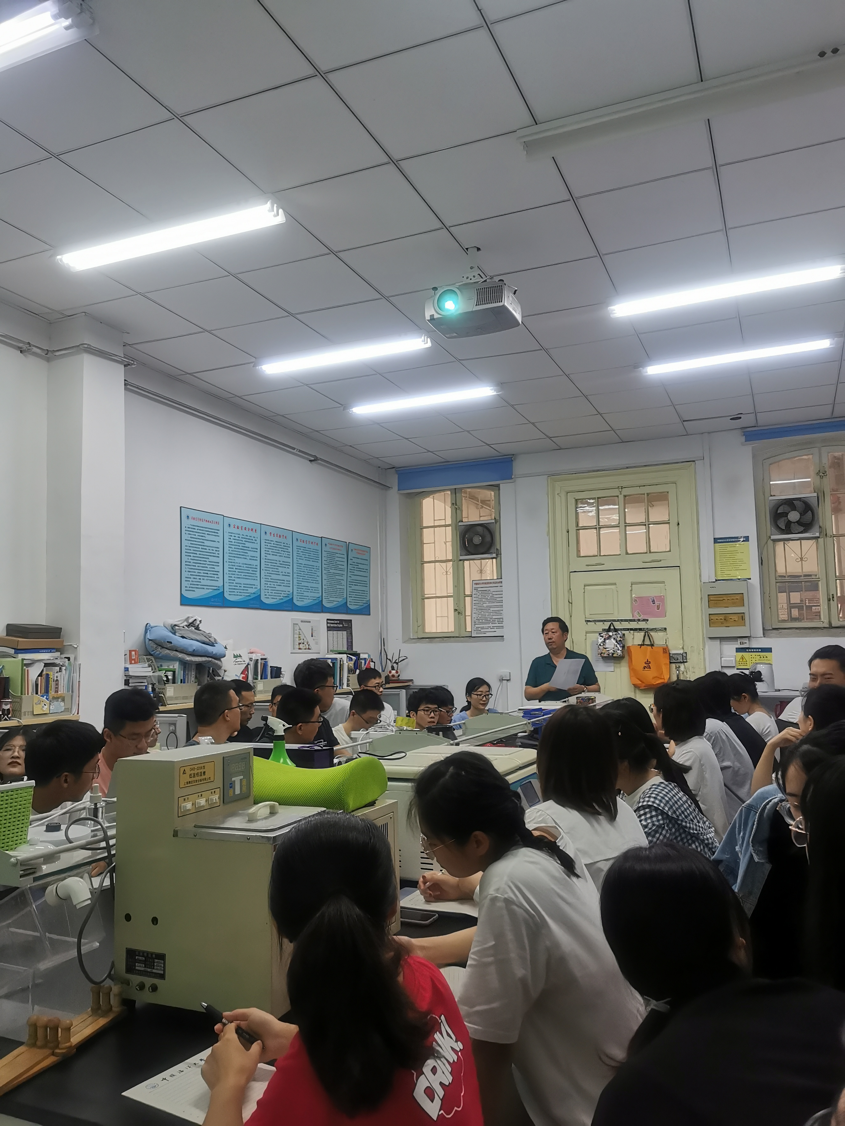 为了让新生更全面的了解实验室概况,温教授做了实验室基本情况的概述的报告。首先,温教授讲解了实验室的建设理念与目标,他要求研究生要有牧海情怀、创新思维,要紧密结合水产行业,解决产业问题。接下来,温教授展示了近年来实验室科研工作的内容及成果,介绍了实验室研究的鱼类、主要承担的科研项目和学术成果。而后,温教授对实验室开展的校外学术活动做了介绍,他展示了实验室成员近年来参加的学术会议和开展的产业调研活动。最后,温教授展示了实验室近年来取得的成就。