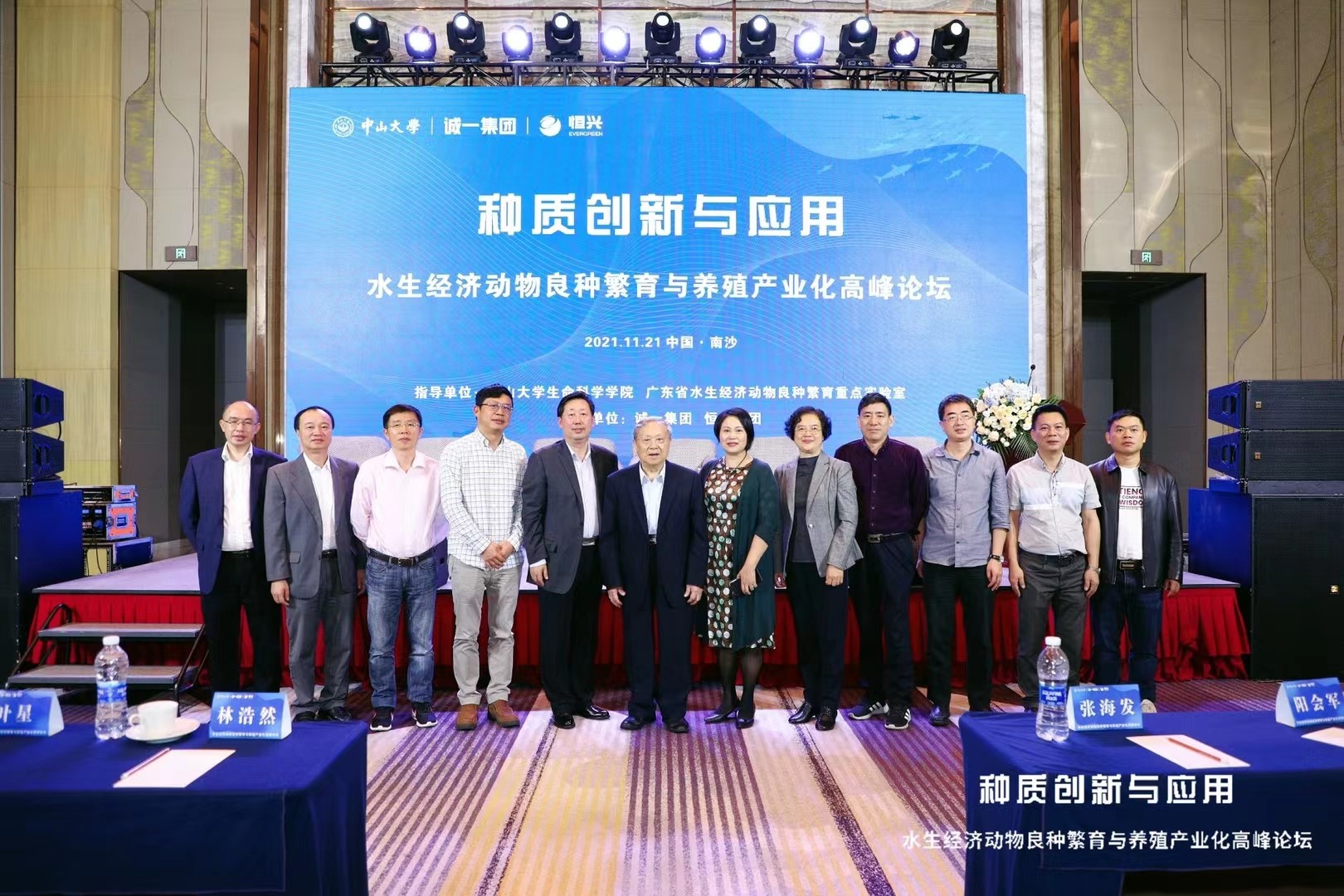 1121日,由中山大学广东省水生经济动物良种繁育重点实验室主办,广州市诚一水产科技有限公司、广东恒兴集团有限公司主办的“水产种质创新与应用”论坛,在广州市南沙区举行。实验室温海深教授和齐鑫副教授参加会议,中山大学教授张勇担任主持,珠江水产研究所研究员叶星作大会报告《鳜鲈良种培育及相关研究汇报》,广东海洋大学教授朱春华作大会报告《南方海水种业硅谷建设设想》报告,阳江职业技术学院教授陈兴汉介绍了《疣吻沙蚕(禾虫)种业创新及综合种养产业化进展》。中国工程院院士林浩然指出:我国是世界水产养殖大国,从2008年起养殖产量一直占世界养殖总产量的60%-70%,其中优良苗种起到了巨大的推动和促进作用。大力发展水产种业,开展种质创新与应用,对于保障水产养殖业的健康可持续发展、促进渔民增收、服务国家经济发展意义深远。广东在水产种业方面的成绩斐然,是全国水产种苗研发的风向标。