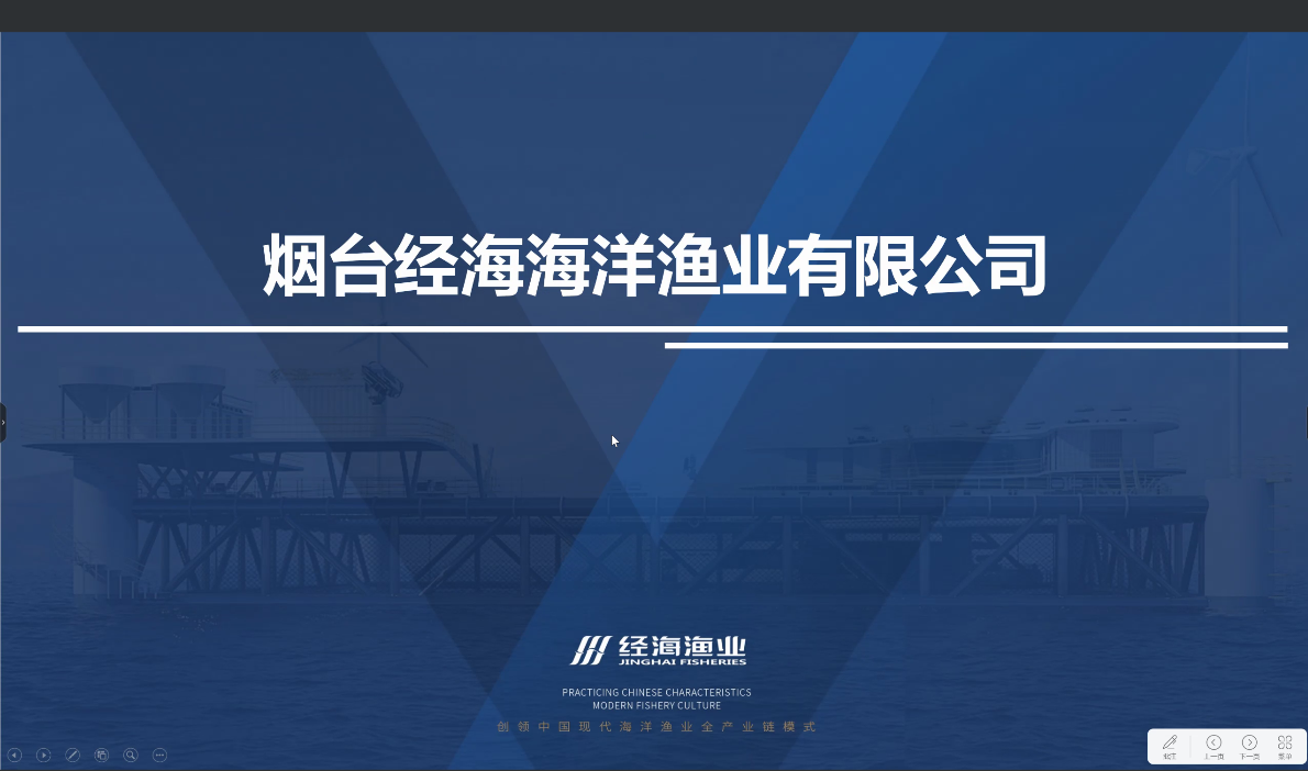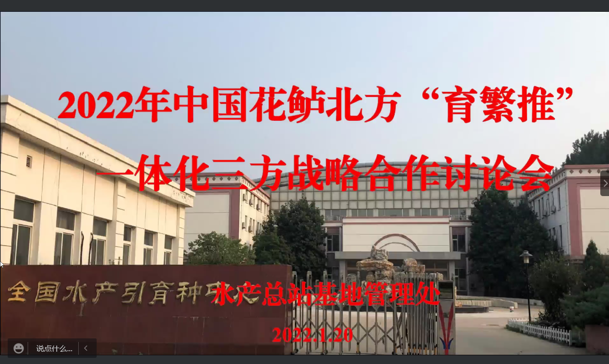 2022120日下午,由烟台经海海洋渔业有限公司(经海渔业)发起,全国水产技术推广总站(水产总站)、中国海洋大学水产学院(中国海大)作为技术支撑的【中国花鲈北方“育繁推”一体化战略合作讨论会】,通过腾讯会议采用线上线下形式召开。水产总站基地处李刚处长、王庆龙副处长、张凯强实验师,经海渔业总经理郭福元、科研部经理史春芳,中国海洋大学水产学院温海深教授、李昀教授等15人参加研讨会。