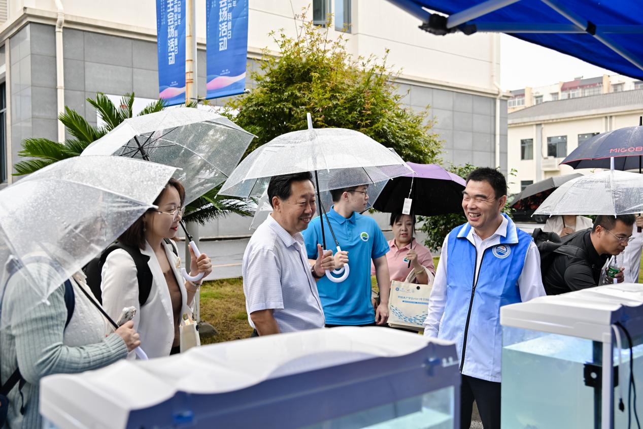 中国水产学会“花鲈养殖产业科学普及团队”首席专家温海深教授出席启动仪式,他现场参观了江苏省水产养殖新种类活体展示,以及渔文化作品。在专家沙龙环节,温海深汇报了近1年来,他所领导的团队在花鲈养殖产业科普方面取得的成果,同时提出了今后工作建议,包括:深挖研究型大学科研资源,推动科普资源转化;加强相关培训,指导团队和科普基地创作多种形式的高质量科普作品,在国家科普平台及各类媒体及时发布,强化大众影响力。