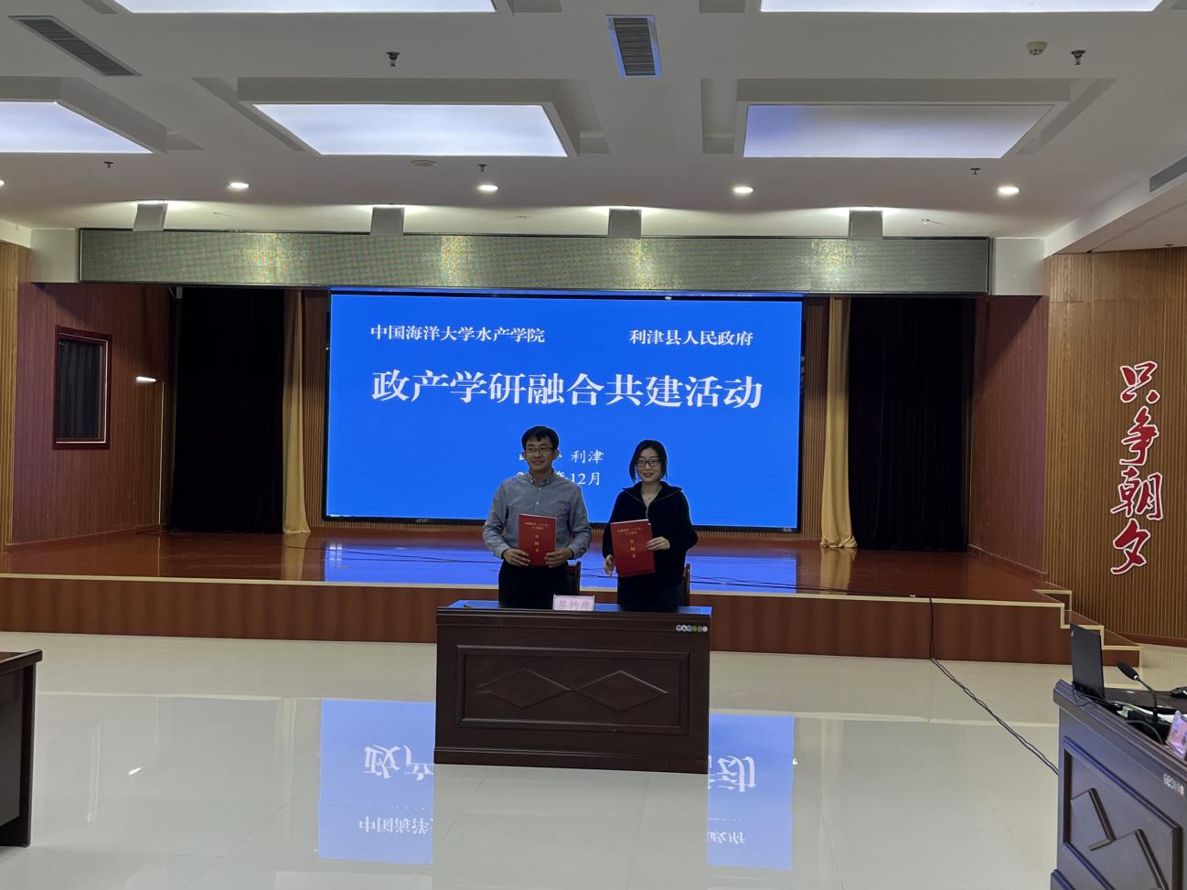 为了加强政产学研合作,助力利津县渔业产业转型和乡村振兴,深入基层提供产业技术服务。12月1-2日,水产学院与东营市利津县政府“政产学研融合共建活动”在利津县刁口乡举行。 出席此次活动的有东营市海洋发展和渔业局副局长黄学东,海洋发展研究院渔业发展研究室主任杨玉艳,科技局农村与社会发展科科长张立宾;利津县副县长张光军,农业农村局党组副书记、副局长刘炳岭,科技创新服务中心主任任志波,农业综合服务中心党总支专职副书记张乃芹;刁口乡党委书记陈建景及相关业务科室、企业负责同志陈守温等20余人参加活动;中国海洋大学水产学院党委书记张猛,副院长温海深,团委书记刘少鹏,李昀教授、齐鑫教授,王海亮实验师出席活动。