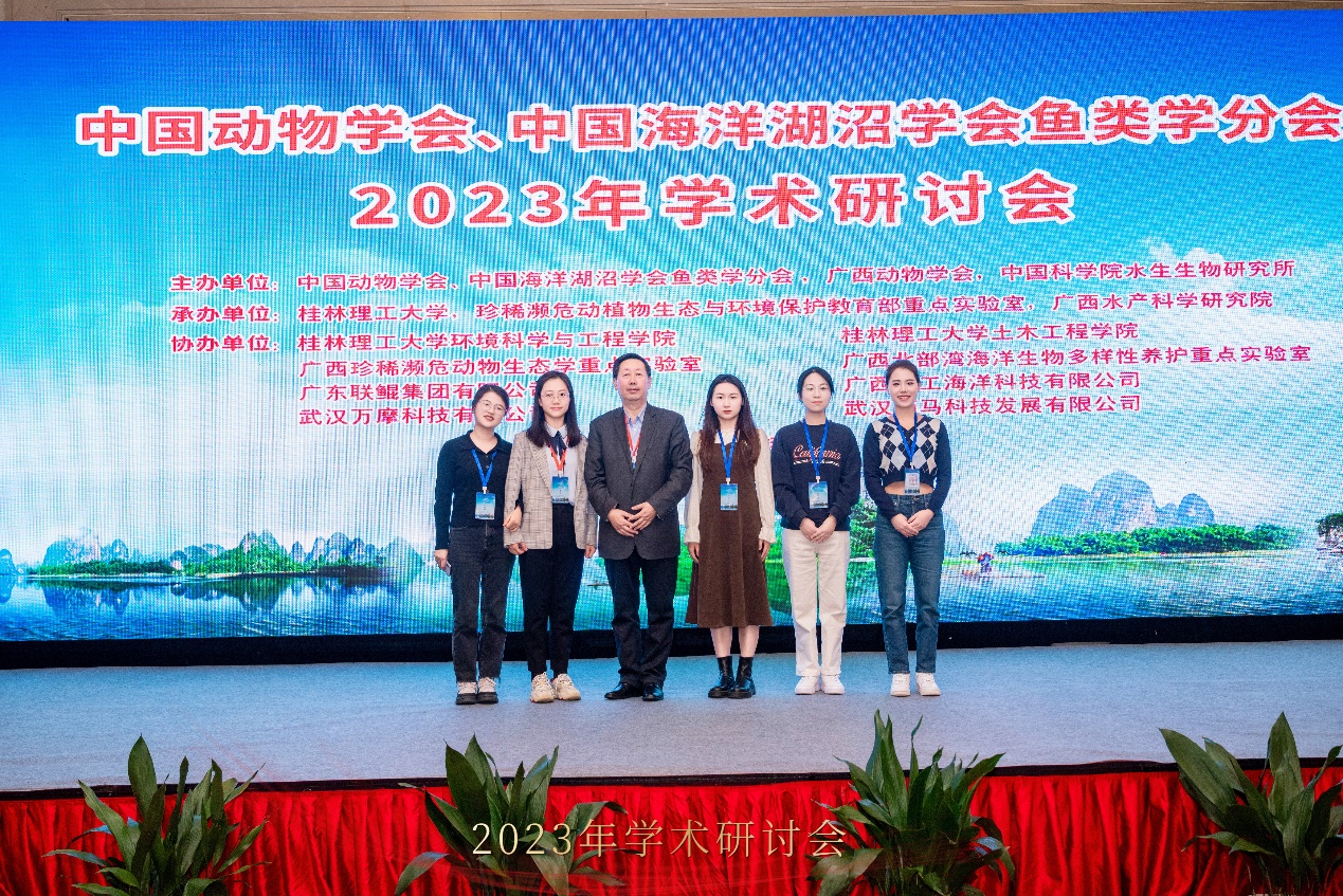 20231229日至202411日,中国动物学会、中国海洋湖沼学会鱼类学分会2023年学术研讨会在广西省桂林市召开,会议由中国动物学会暨中国海洋湖沼学会鱼类学分会广西动物学会等单位主办,桂林理工大学等单位承办。会议主题涵盖鱼类发育与遗传、鱼类分类及生态、鱼类生理、鱼类生物多样性等。大会主题报告:桂建芳院士以《鲫的遗传育种故事》为题,揭示了银鲫独特的生殖方式及其演化的遗传机制;刘少军院士以《鱼类良种良养良销》为题,倡导鱼类良种良养良销体系建立及应用;陈松林院士以《海水鱼类生物技术与种业:十年创新与发展》为题,探讨了海水鱼类的研究进展和发展前景。随后何舜平研究员、危起伟研究员、庄平研究员、徐鹏教授、高泽霞教授和吴志强教授也围绕主题进行了相关报告。本次大会展示了鱼类学研究的最新研究成果和重要进展,分享科研经验,为青年学者的成长提供了高水平交流平台。本次会议参会人员500余名,包括国内鱼类学领军科学家、行业专家和研究生,本实验室由温海深教授带领研究生张静茹、杨晶、景潇和郭晴晴出席,并在青年研究生学术论坛中做大会报告博士研究生张静茹、硕士研究生杨晶和硕士研究生景潇获得研究生论坛三等奖,硕士研究生郭晴晴获得研究生论坛优胜奖。