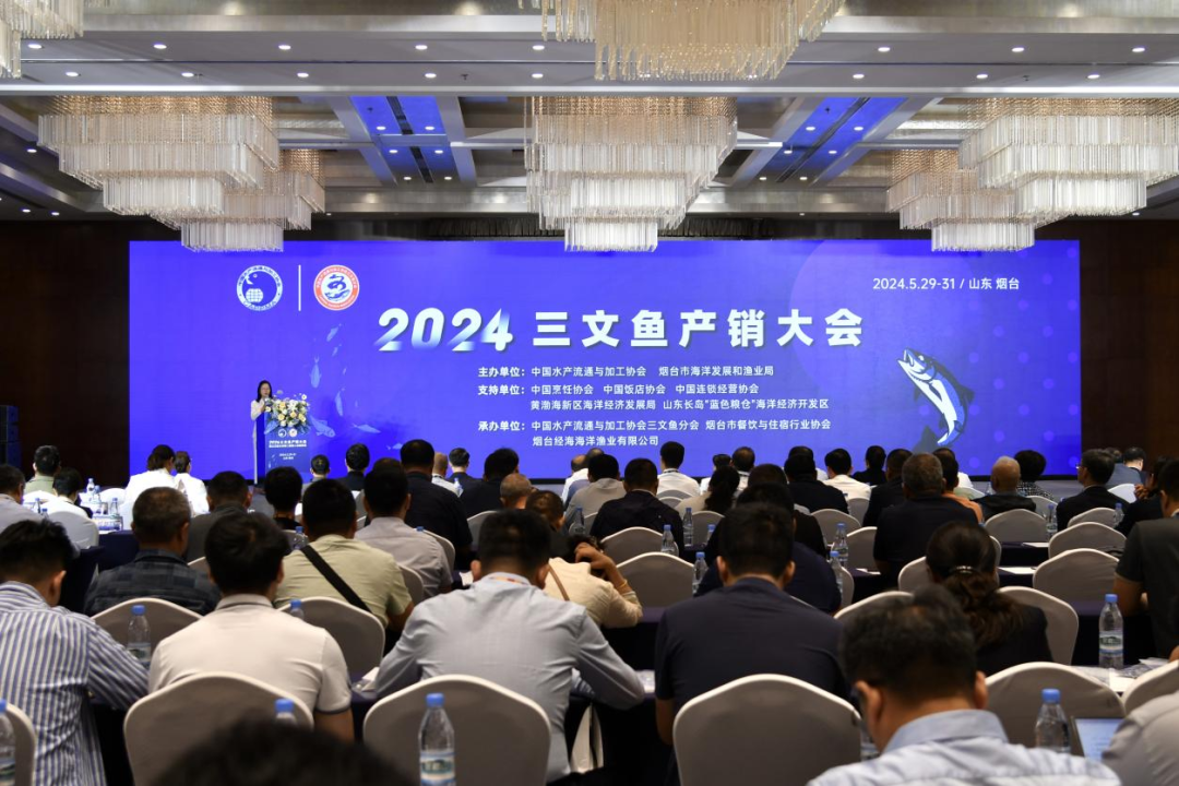 为进一步加强水产行业间交流与合作,拓展国内外三文鱼市场,延伸产业链,促进三文鱼产业高质量发展,529-612024三文鱼产销大会在山东烟台召开。本次大会由中国水产流通与加工协会、烟台市海洋发展和渔业局主办,中国水产流通与加工协会三文鱼分会、烟台市餐饮与住宿行业协会、烟台经海海洋渔业有限公司承办,并得到中国烹饪协会、中国饭店协会、中国连锁经营协会、黄渤海新区海洋经济发展局、山东长岛“蓝色粮仓”海洋经济开发区的大力支持。来自全国三文鱼相关企业、研究所、大学等单位300余人参会。