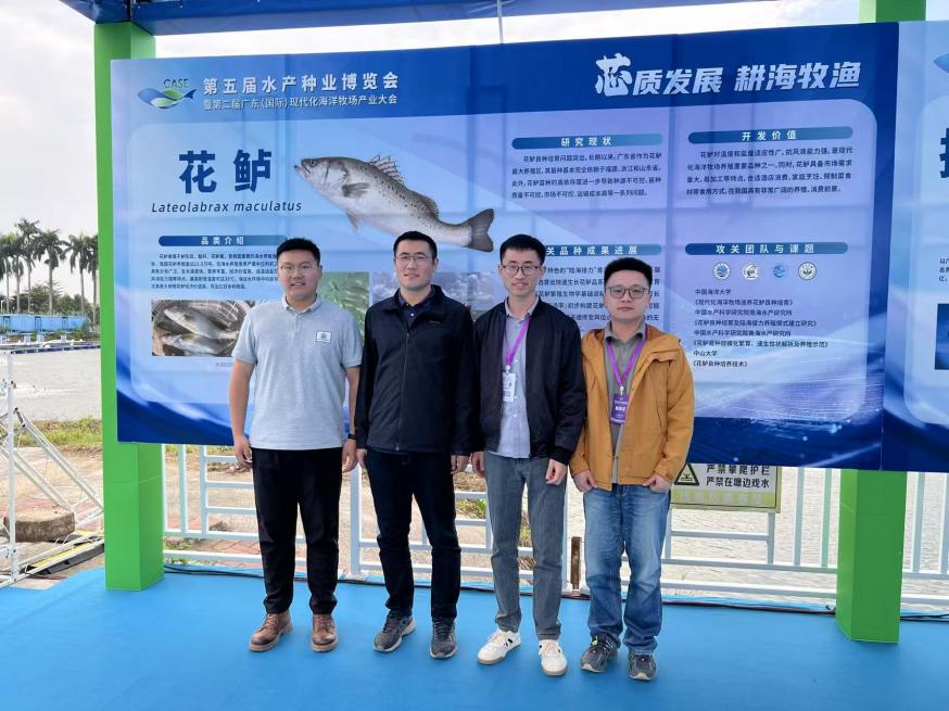 11月21-24日,第五届水产种业博览会暨第二届广东(国际)现代化海洋牧场产业大会在广州召开,本届大会由全国水产技术推广总站、中国水产科学研究院指导,中国水产学会、广东省农业农村厅、广州市农业农村局、广州市南沙区人民政府主办。本实验室王海亮实验师、孙冬磊博士后参加本次大会。 在大会展览区,实验室成员携带本团队培育的花鲈速生新品系参展,吸引了众多科研工作者、企业家、中小学生等人群驻足参观、咨询。王海亮实验师向前来参观的人员详细的介绍了花鲈的特点、生活习性、市场行情、团队的科研成果、新品系的优势等,同时,也面对前来参观的中小学生开展了花鲈的科普讲解。