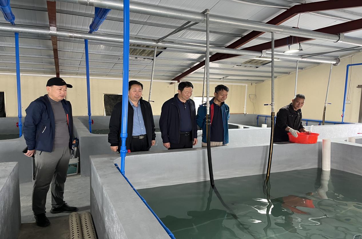 温海深等参观海鲈亲鱼生殖调控车间