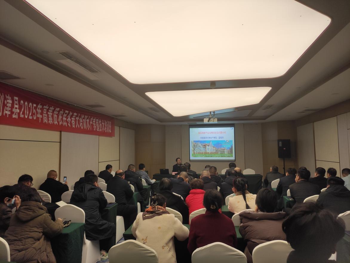 2月26-27日,东营市利津县2025年高素质农民冬春大培训水产养殖技术培训班,在青岛市山东健康丽呈睿轩酒店开班,利津县农业农村局负责同志、水产养殖从业者等40余人参加了本次培训。 2月26日,本实验室温海深教授受邀为培训班进行授课,温海深教授以《我国海鲈产业发展现状及问题分析》为题,介绍了我国海鲈产业的分布、养殖模式、养殖技术,剖析了我国海鲈行业存在的问题,提出了我国海鲈产业的发展方向。课堂上,学员与温教授积极互动,授课效果良好。