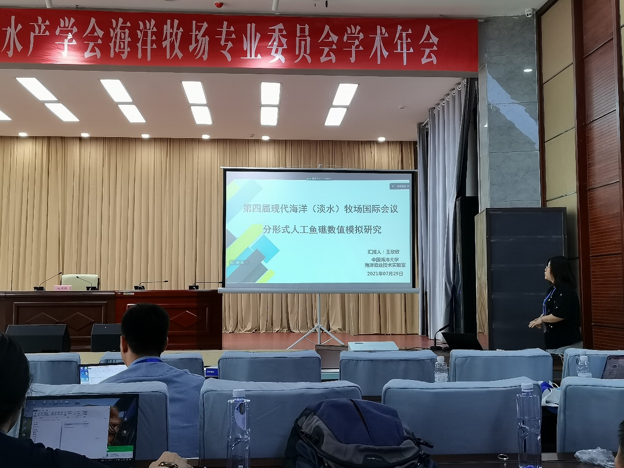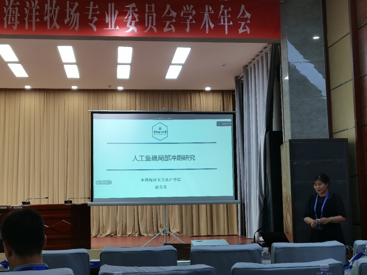 会议上,赵芬芳老师、王欣欣老师和于梦杰博士分别作了题为《人工鱼礁局部冲刷研究》、《分形式人工鱼礁流场效应研究》和《海洋牧场区不同网目尺寸地笼网的选择性研究》的口头报告。报告可为人工鱼礁选址、海洋牧场建设、人工鱼礁结构优化、海洋牧场区渔业资源可持续利用和捕捞渔具管理提供理论指导和技术支撑。