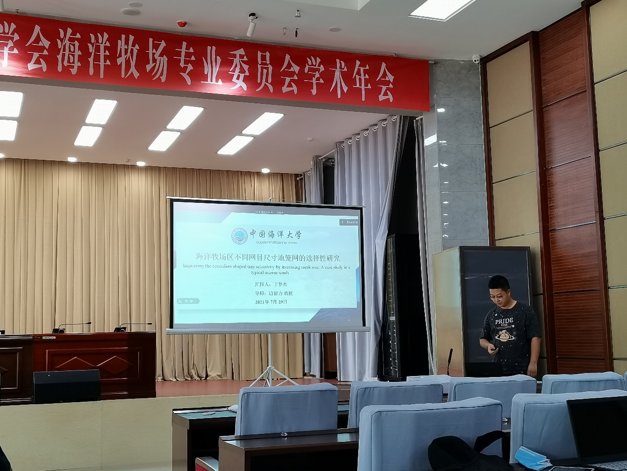 图4 于梦杰博士进行《海洋牧场区不同网目尺寸地笼网的选择性研究》汇报