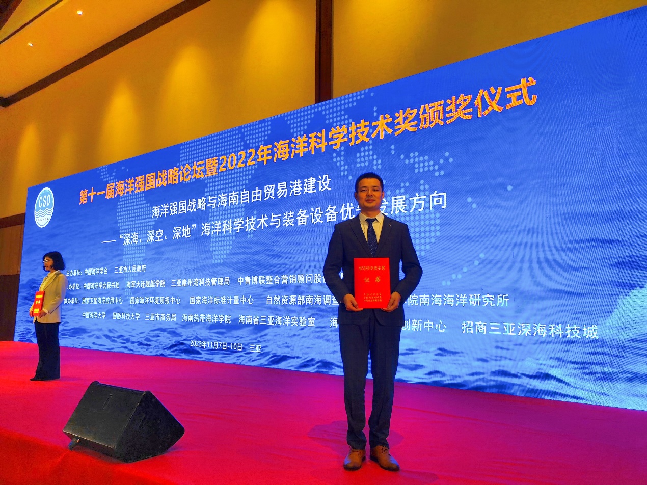 2023年11月8日,第十一届海洋强国战略论坛暨2022年海洋科学技术奖颁奖仪式在三亚举行。由实验室毕春伟教授(第一完成人)和黄六一教授(第六完成人)共同完成的成果“污损生物对养殖网箱动力环境影响机制及其防控技术”荣获海洋科学技术一等奖。