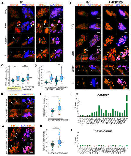 图1. GTSF1蛋白缺失对组蛋白甲基化H3K9me3与H3K27me3的影响。